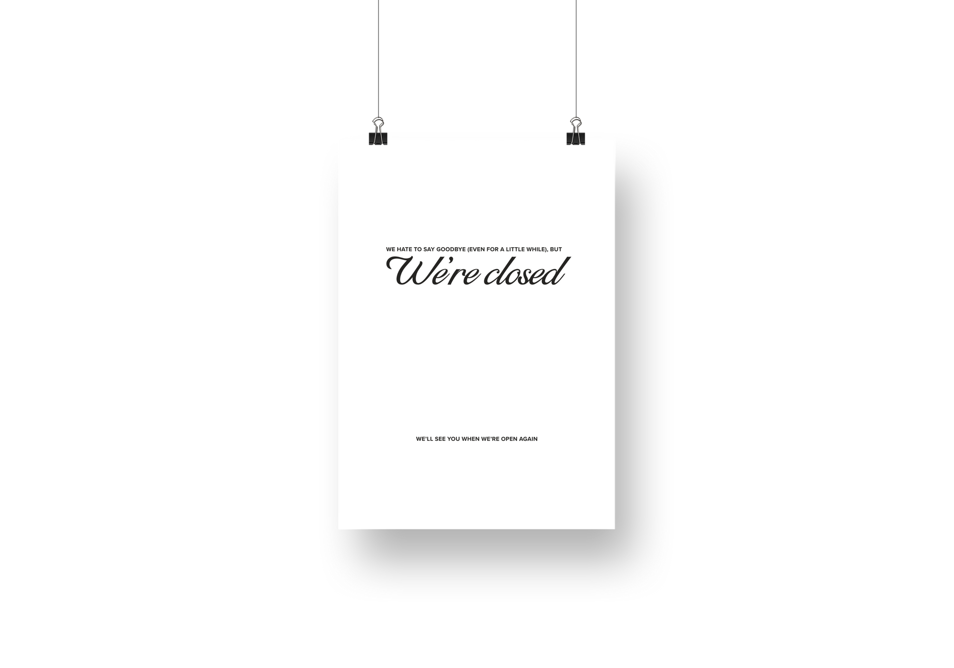 - Display on your door, window, or front counter when you’re open for business.